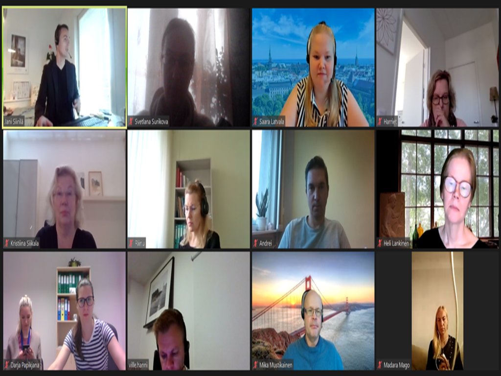 Kick-off meeting generally is held once the project planning is completed by the project consortium and usually its purpose is to ensure that everyone is aware of the project details and his or her role within the project. However, in projects that span multiple phases, it can happen at the beginning of a new phase. The INTERREG Central Baltic project “Sustainability in Finance – SuFi” (www.sufi.fi) kick-off meeting has been organised by Haaga-Helia University of Applied Sciences (the SuFi lead partner) on 25 September 2020 via Zoom at the beginning of the project’s second phase aimed at (1) conducting the survey to find out the finance industry's expectations on future competences needed among business graduates, specifically in business education in finance as well as (2) elaborating the first draft of an open online module “Sustainability in Finance” for vocational education and training (15 ECTS).